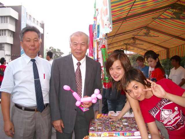 陳主委(本校前任校長),於校慶期間蒞校與全校師生共同參與園遊會,並與現任蘇校長合照。