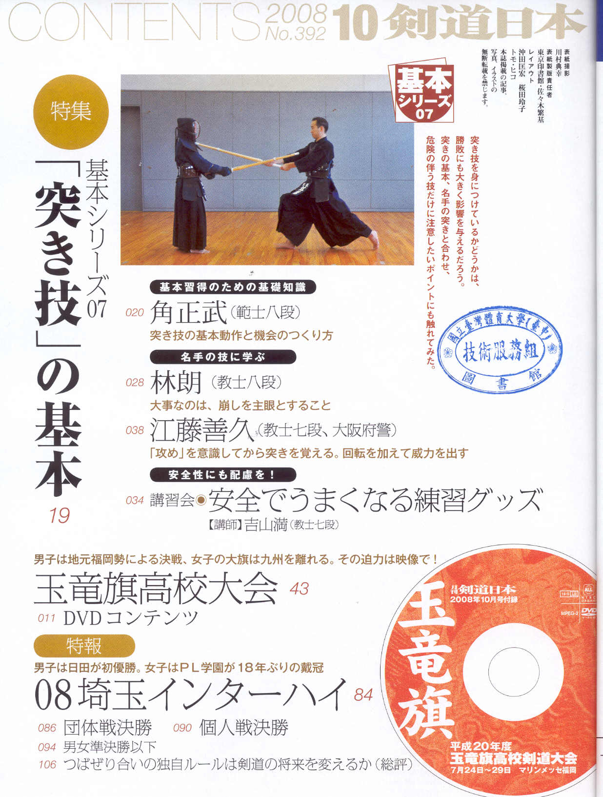 剣道日本 2008-10No.392(目次服務)