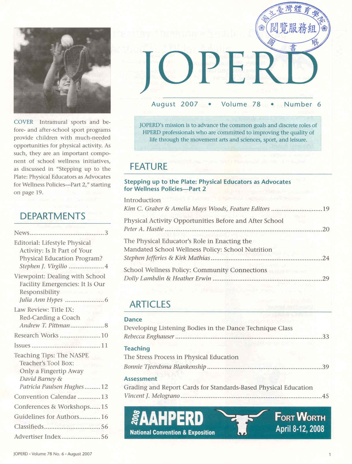 Journal of Physical Education and Recreation and Dance 2007-08v.78-6(目次服務)