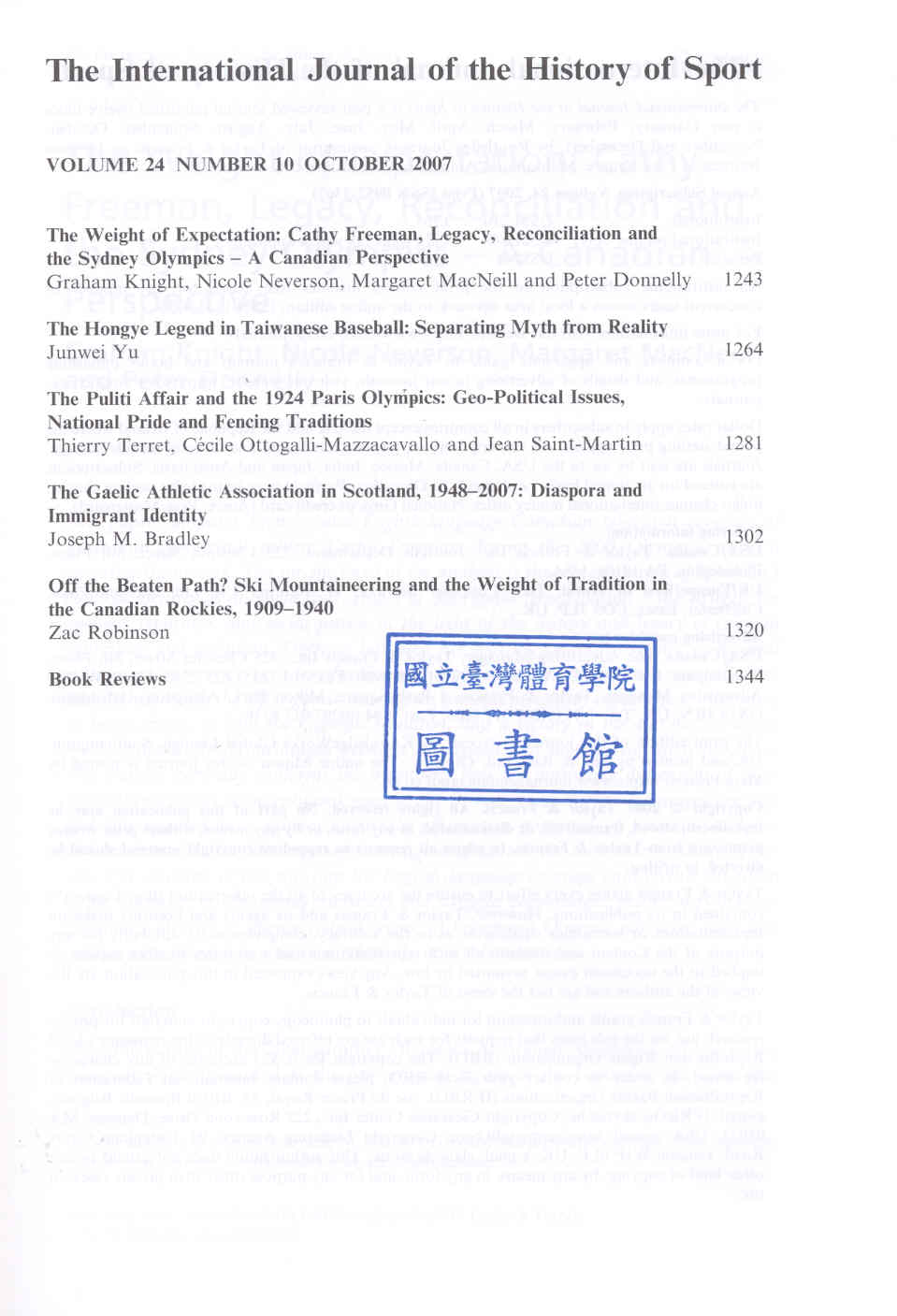 International Journal of the History of Sport 2007-10v.24-10(目次服務)