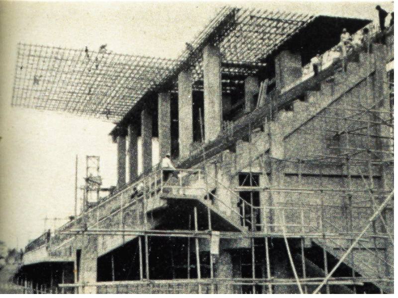 施工中的省立體育場司令台,大約民國45-50年代之間。