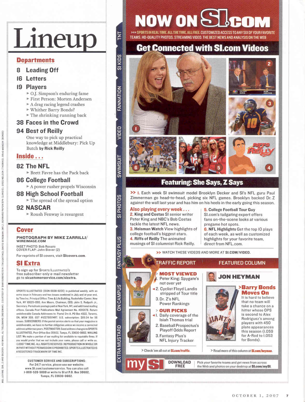 Sports Illustrated 2007-10v.107-13(目次服務)