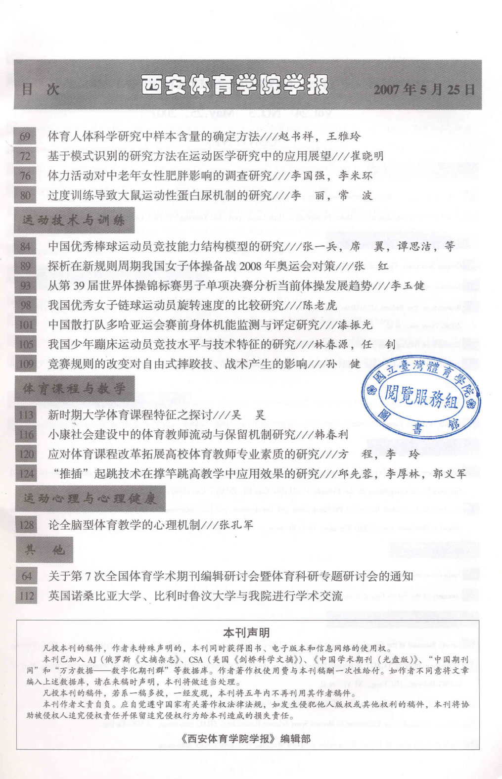 西安体育学院学报 2007-05v.24-3(目次服務)