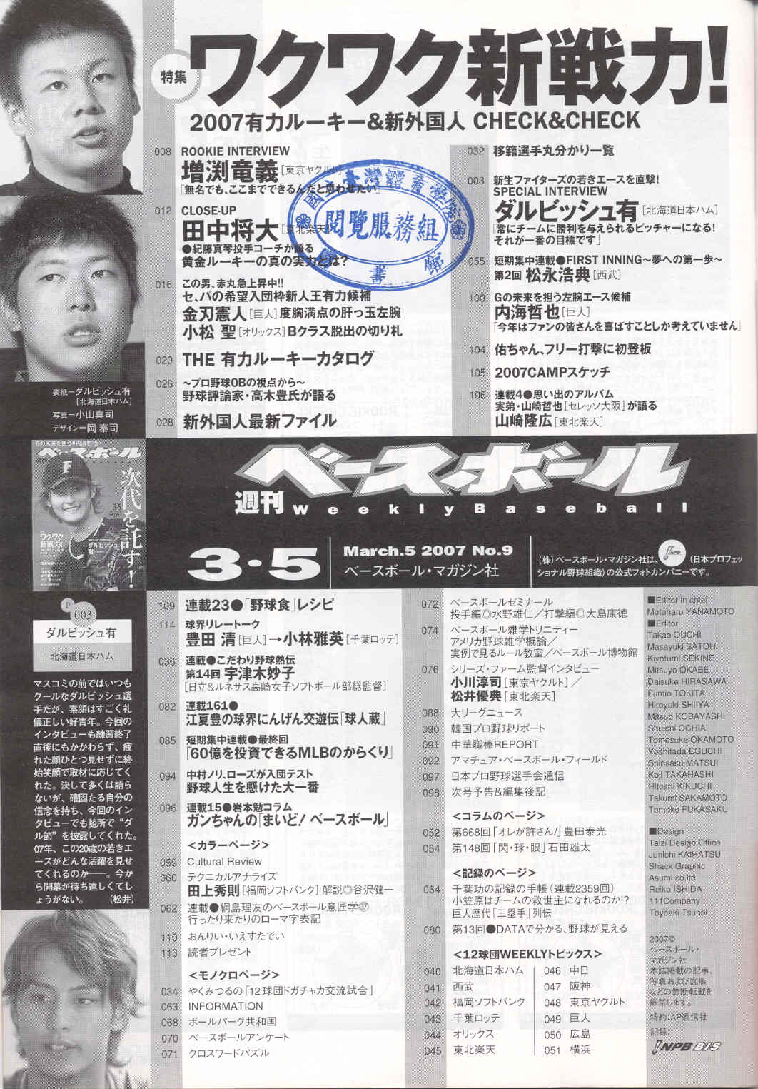 ベ—スボ—ルマガジン 2007-03v.62-9(目次服務)
