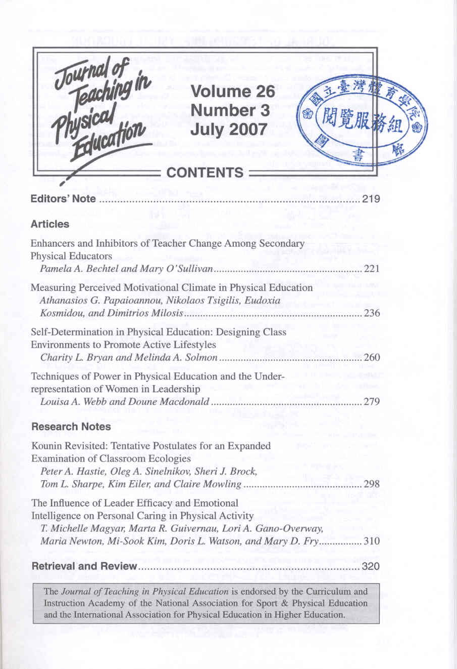 Journal of Teaching in Physical Education 2007-07v.26-3(目次服務)