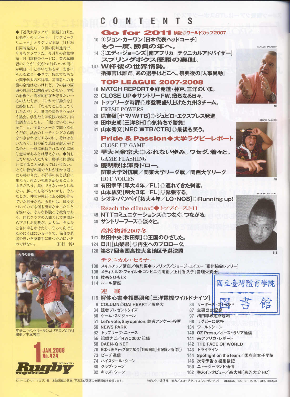 ラクビ—マガジン 2008-01No.424(目次服務)