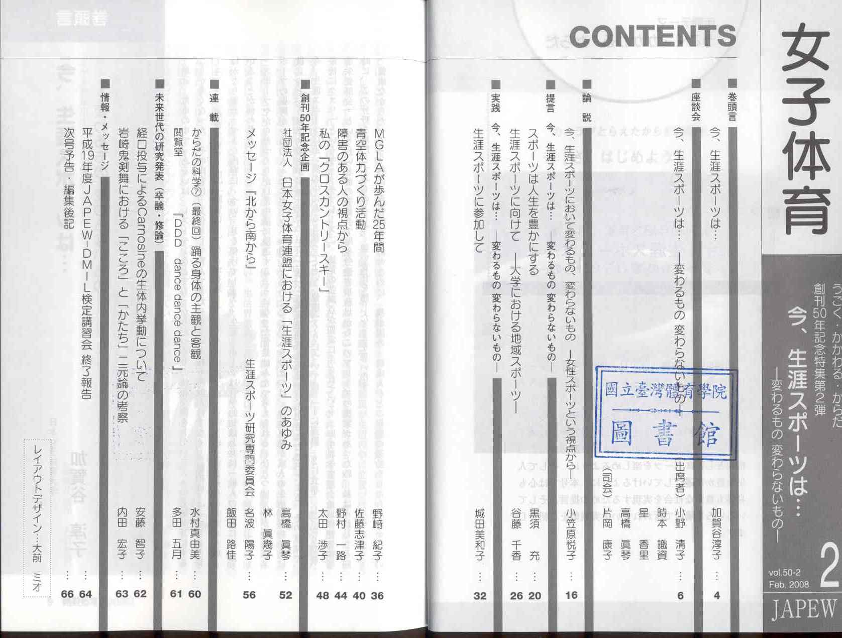 女子体育 2008-02v.50-2(目次服務)