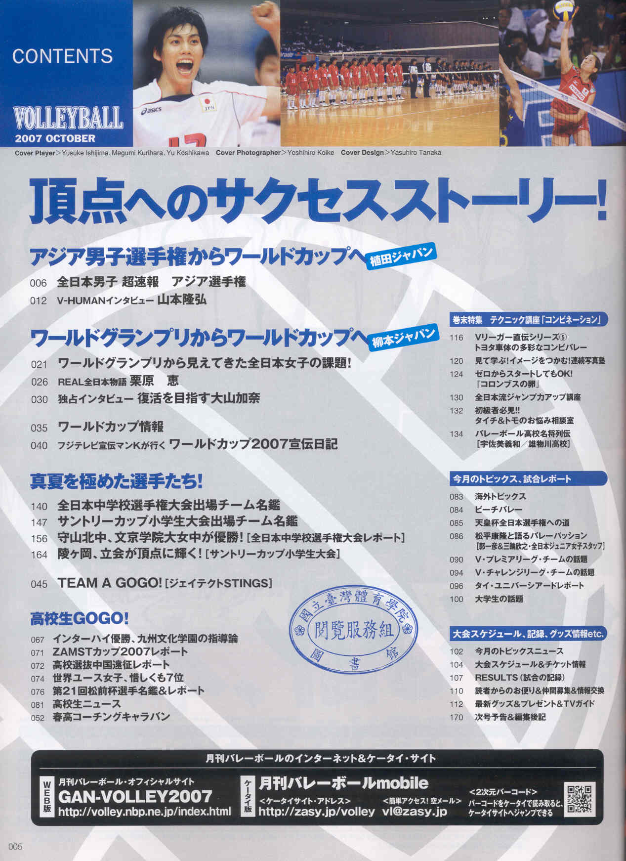 月刊バレ—ボ—ル 2007-10v.61-11(目次服務)