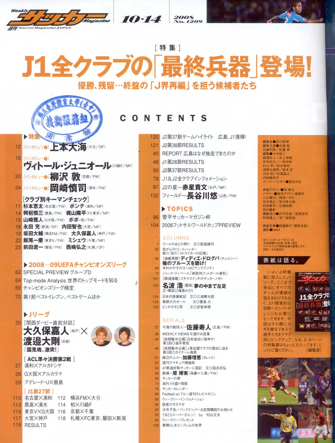 サッカ—マガジン 2008-10No.1209(目次服務)