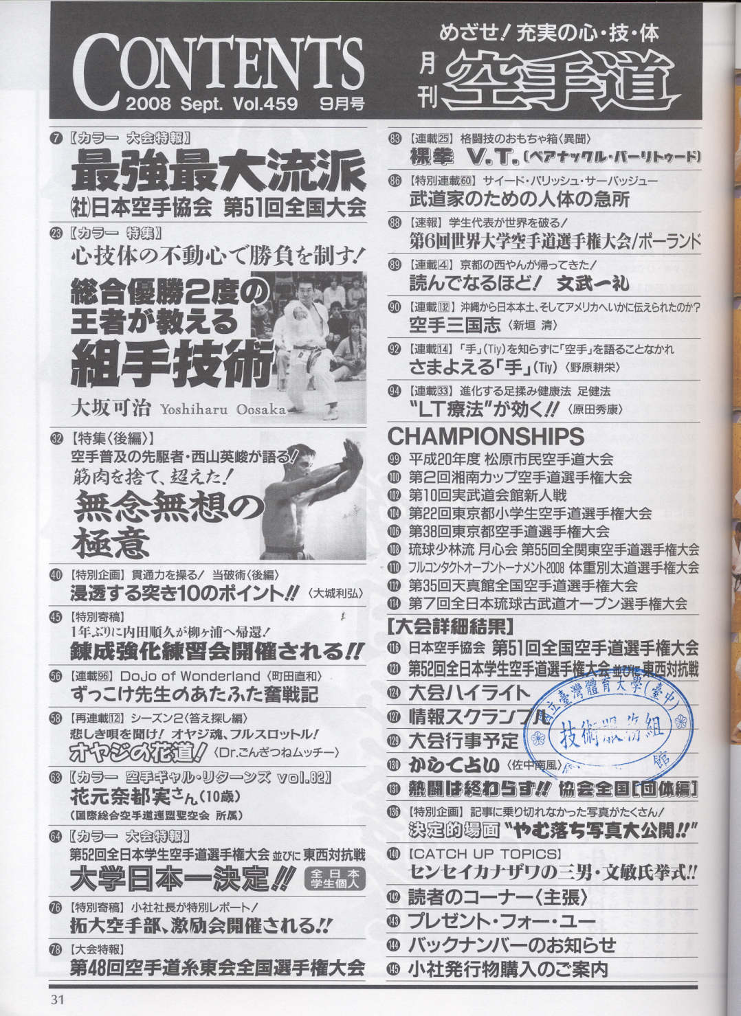 月刊空手道 2008-09No.459(目次服務)