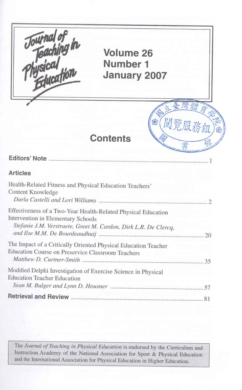 Journal of Teaching in Physical Education 2007-01v.26-1(目次服務)
