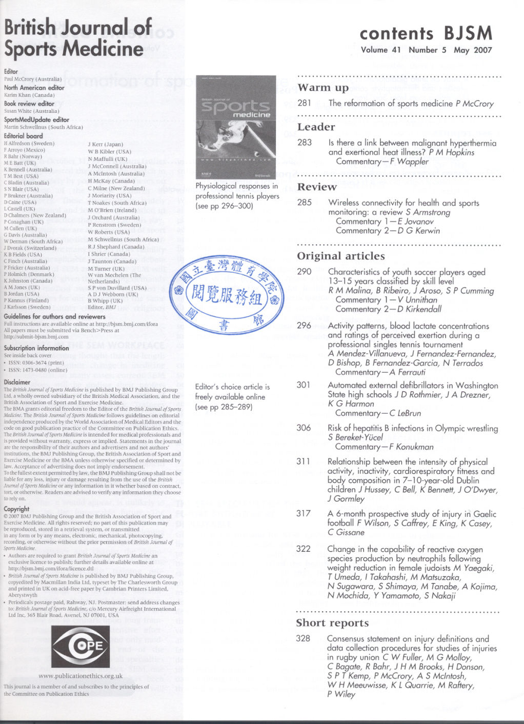 British Journal of Sports Medicine 2007-05v.41-5(目次服務)
