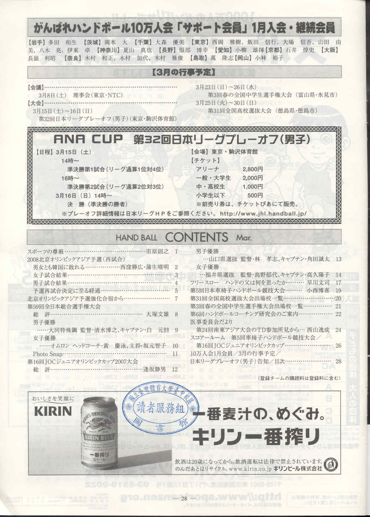 ハンドボ–ル 2008-03No.488(目次服務)