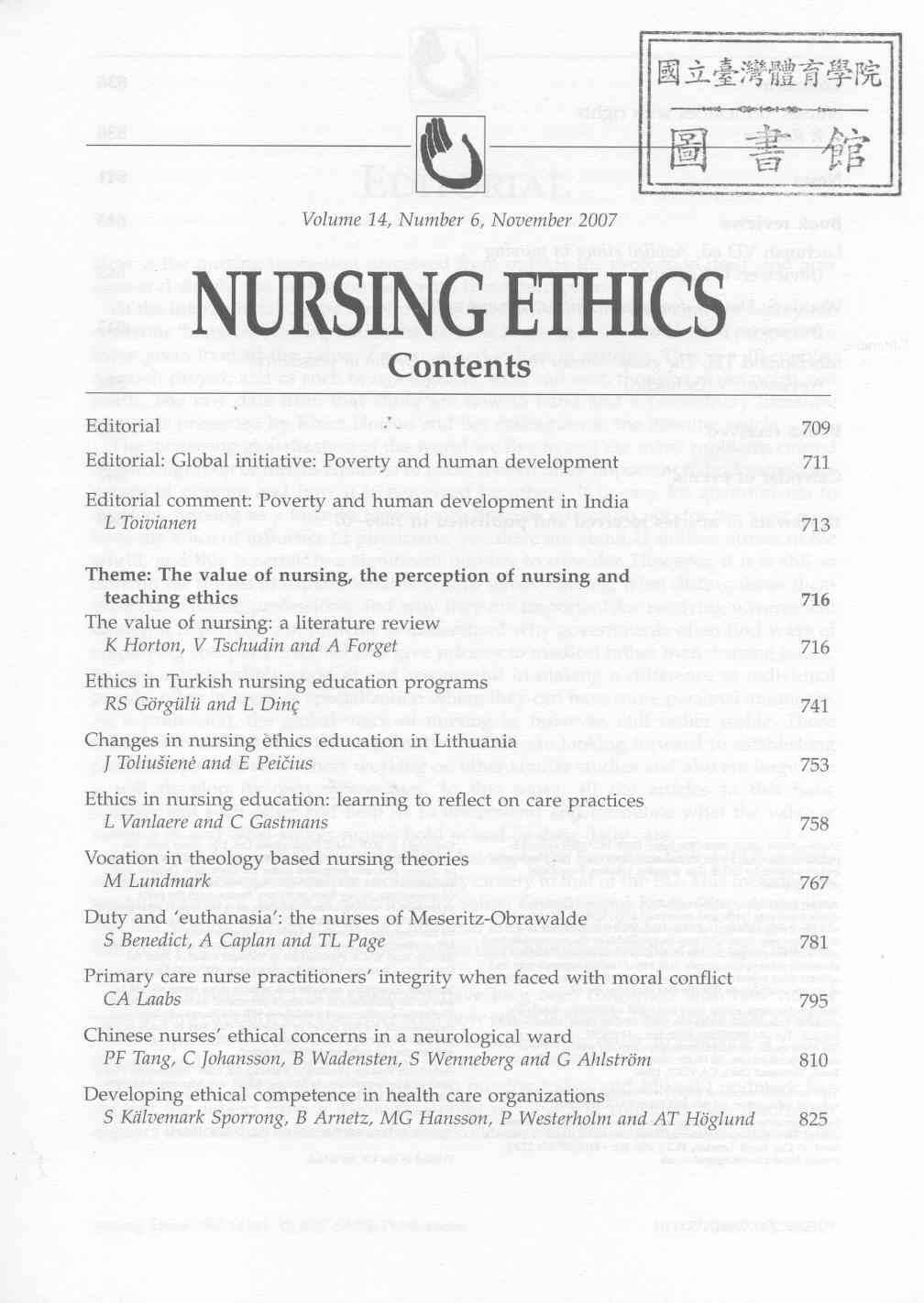 Nursing Ethics 2007-11v.14-6(目次服務)