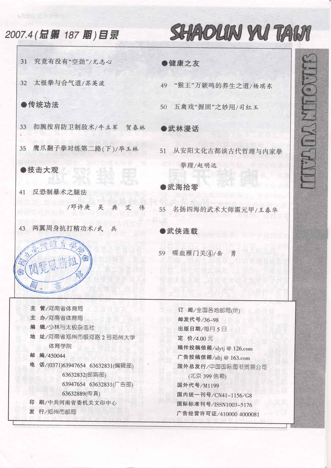 少林与太极 2007-04No.187(目次服務)