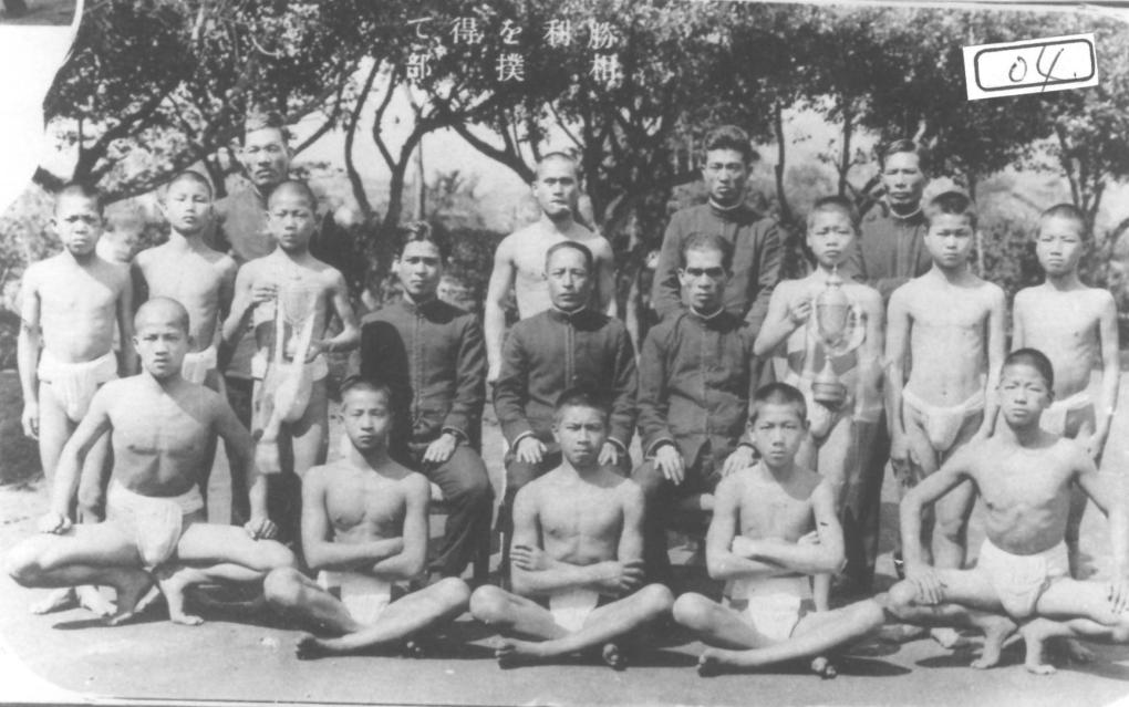 相撲比賽,得到的成果歷歷在目,英氣煥發的姿勢,挺拔無比。年逾七十歲的鄭瑞生(左前排二),看到小時候的優勝比賽相片,如數家珍。(圖文:蔡麗美)