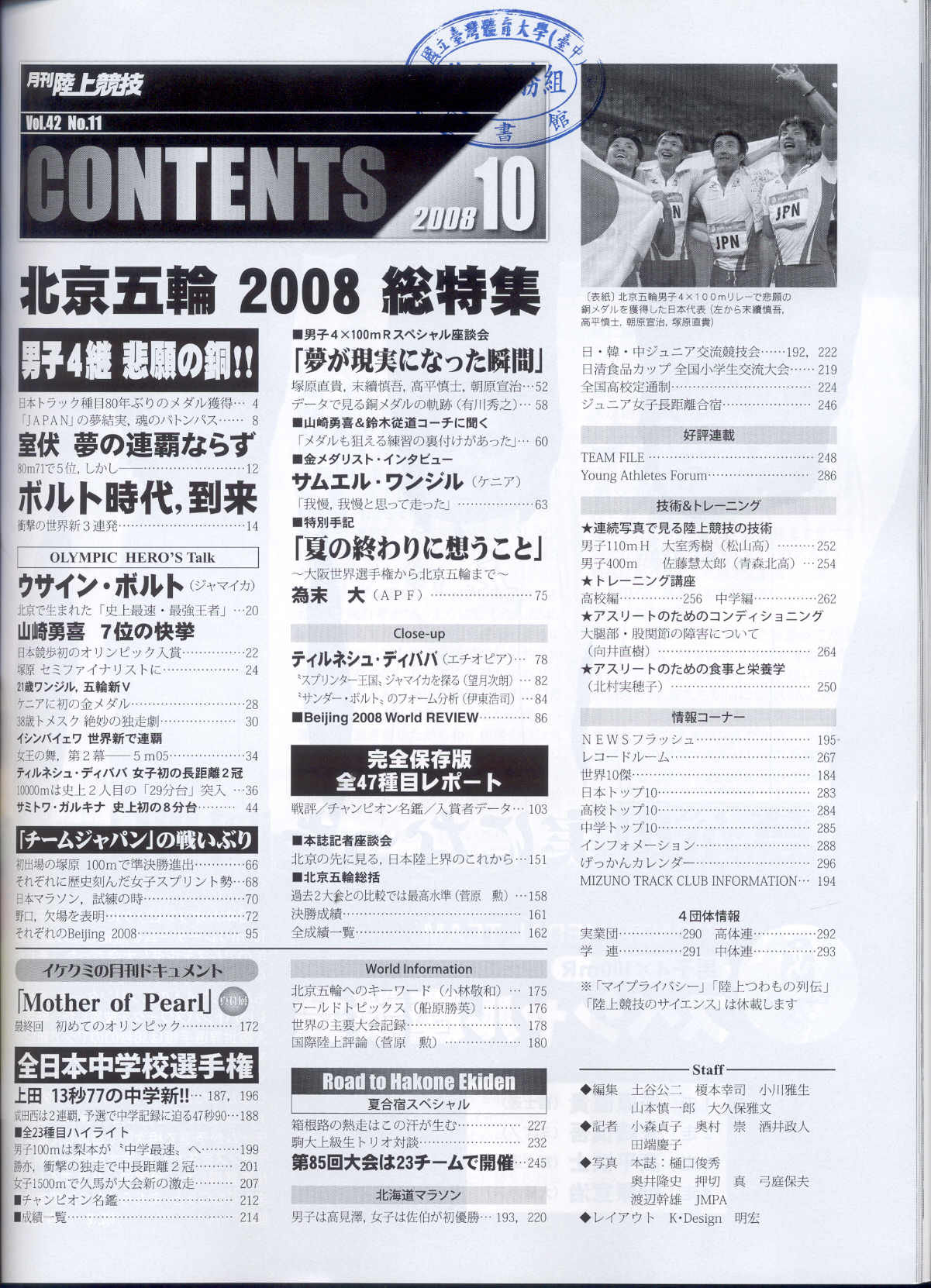 月刊陸上競技 2008-10v.42-11(目次服務)