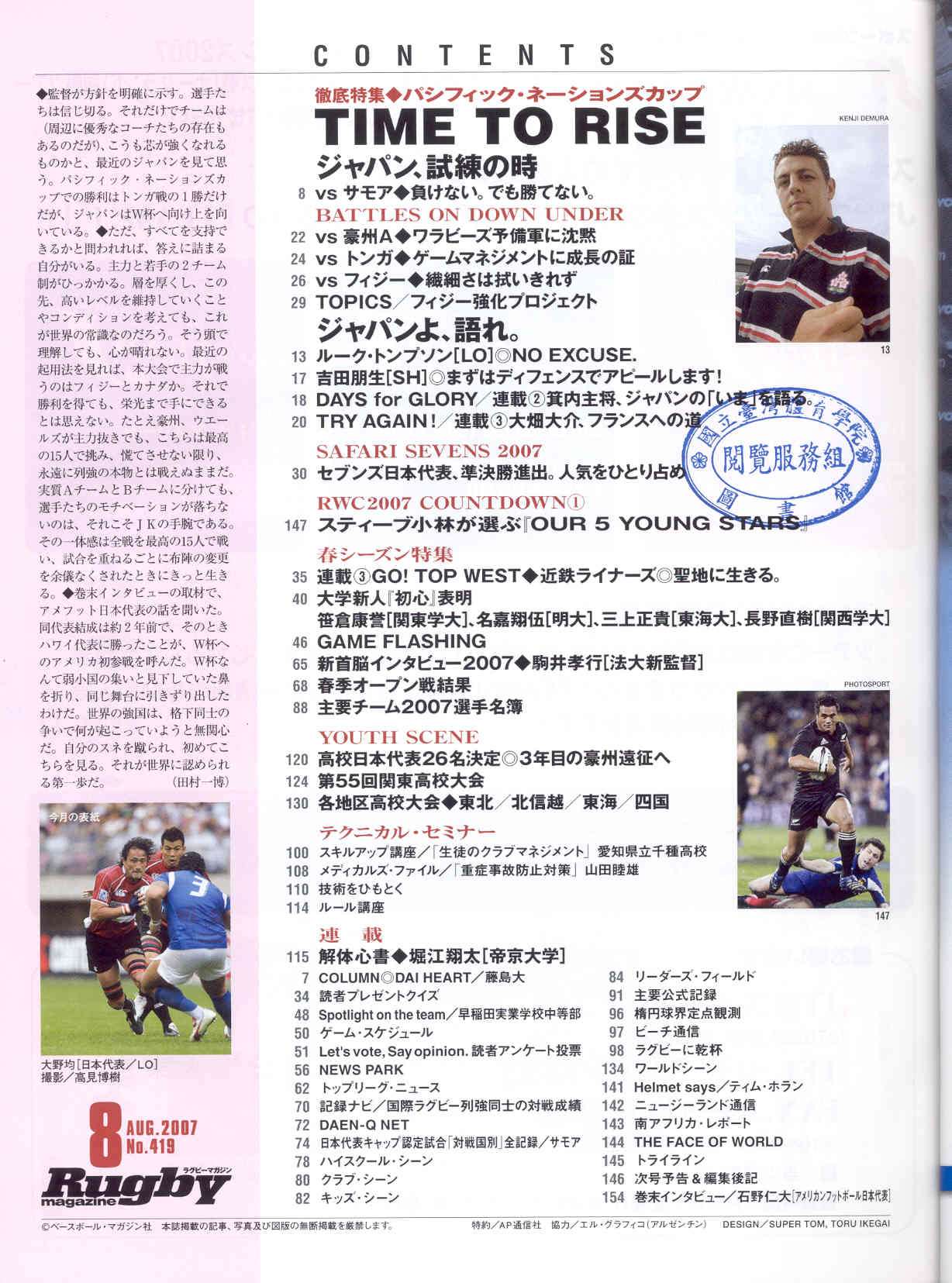 ラクビ—マガジン 2007-08No.419(目次服務)