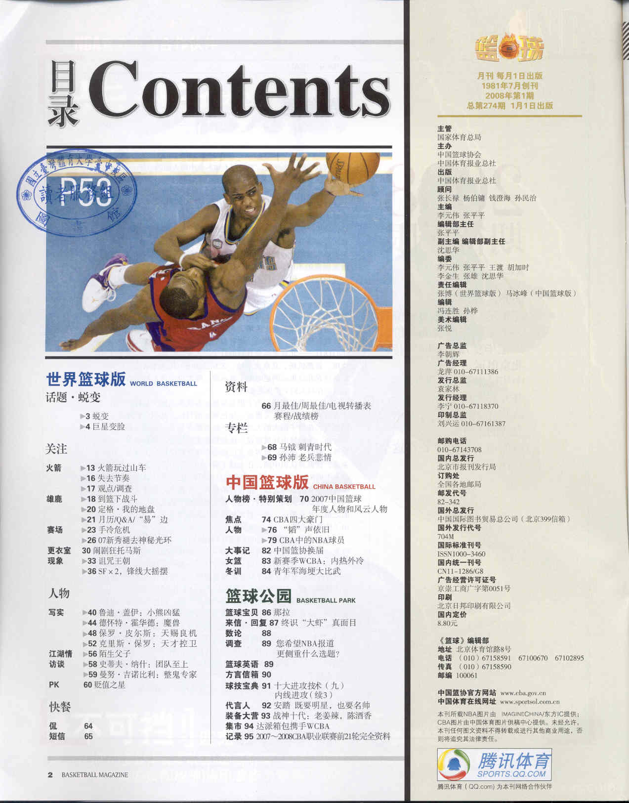 篮球 2008-01No.274(目次服務)