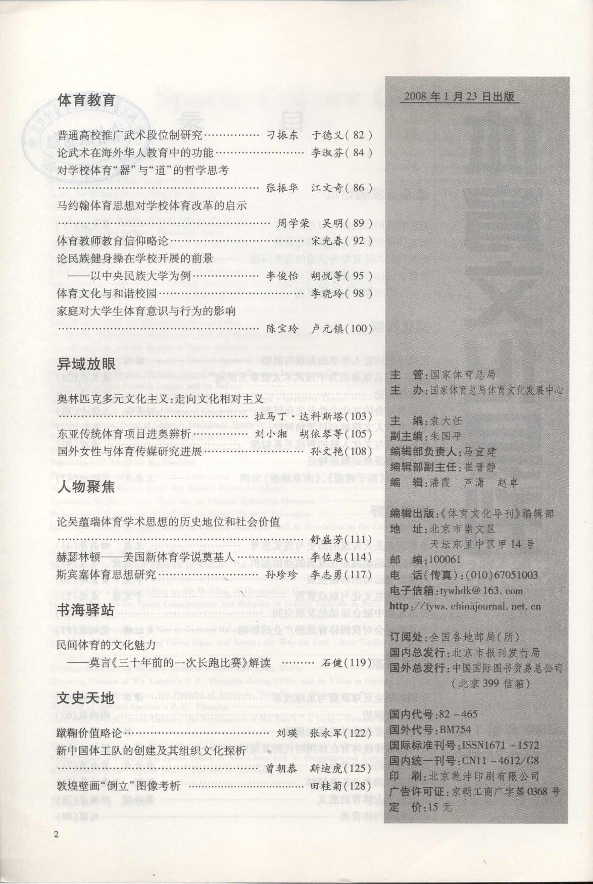 体育文化导刊 2008-01No.67(目次服務)