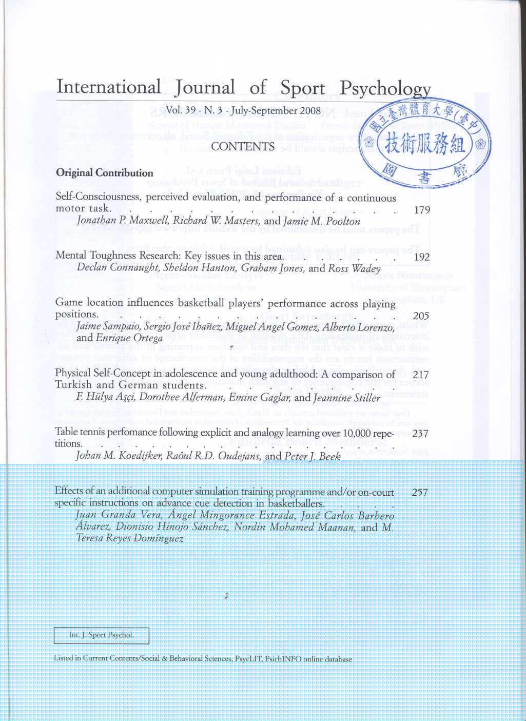Internatinal Journal of Sport Psychology 2008-07-09v.39-3(目次服務)