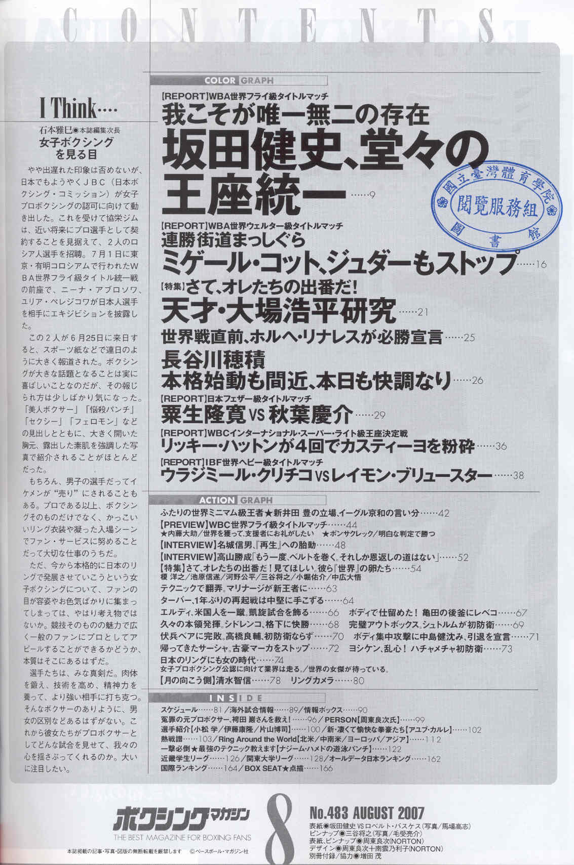ボクシンクマカジン 2007-08No.483(目次服務)