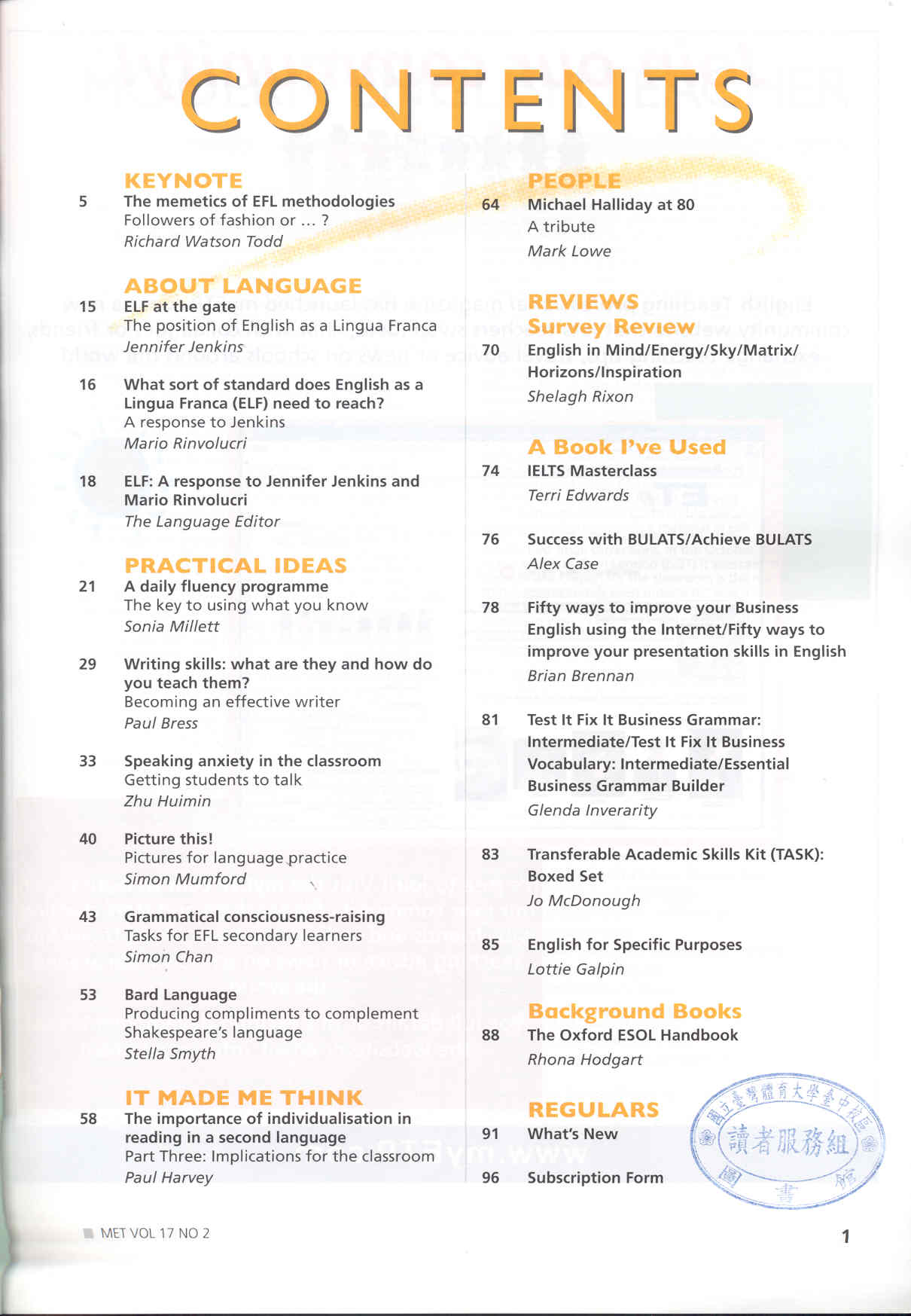 Modern English Teacher 2008-04v.17-2(目次服務)