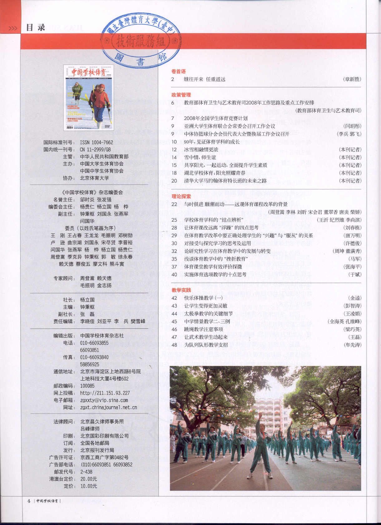 中国学校体育 2008-01No.171(目次服務)