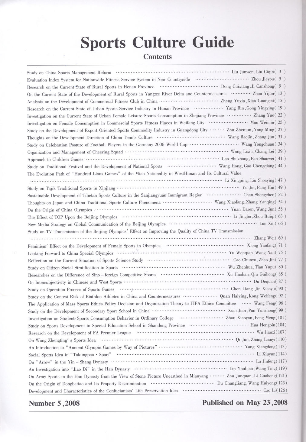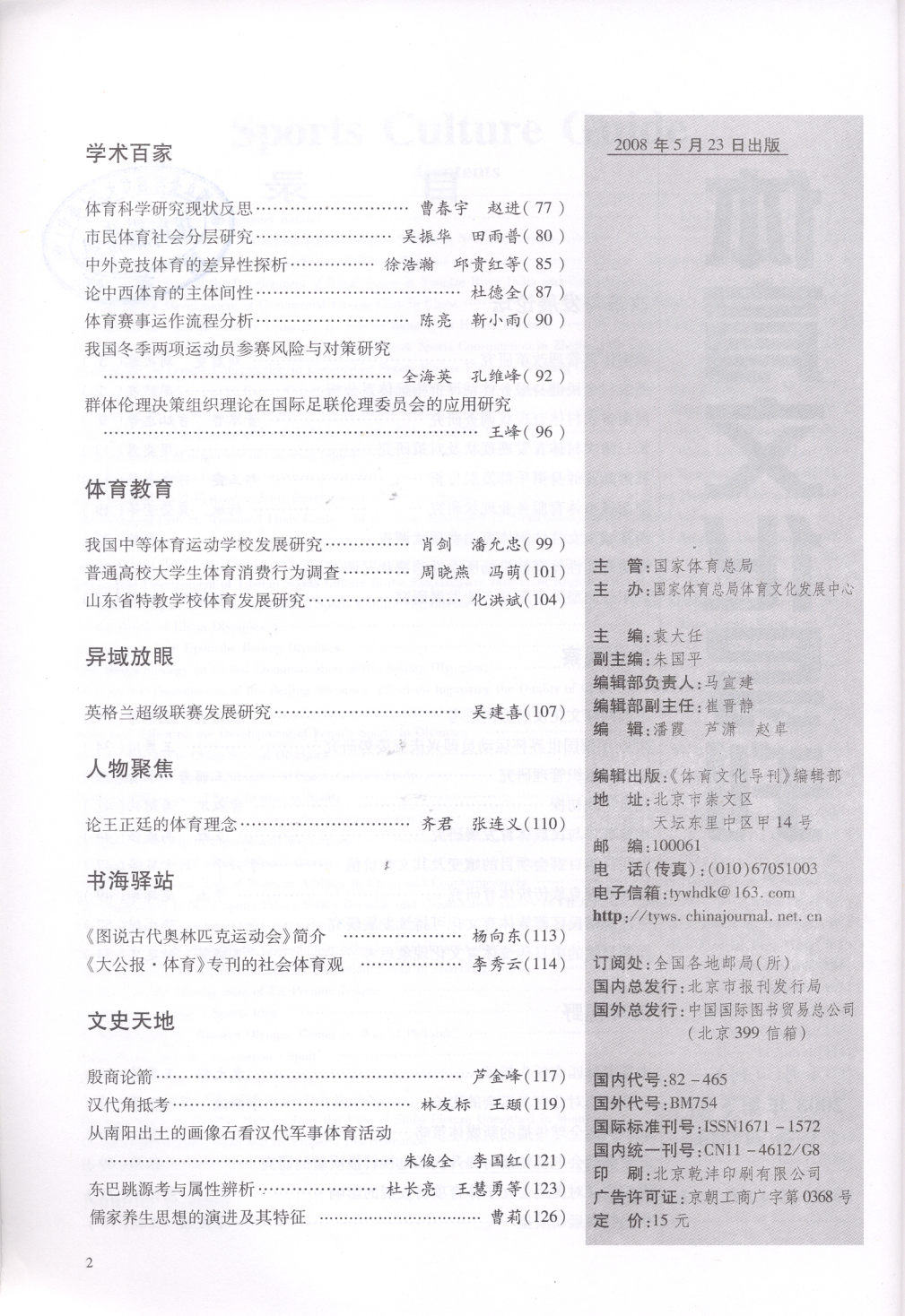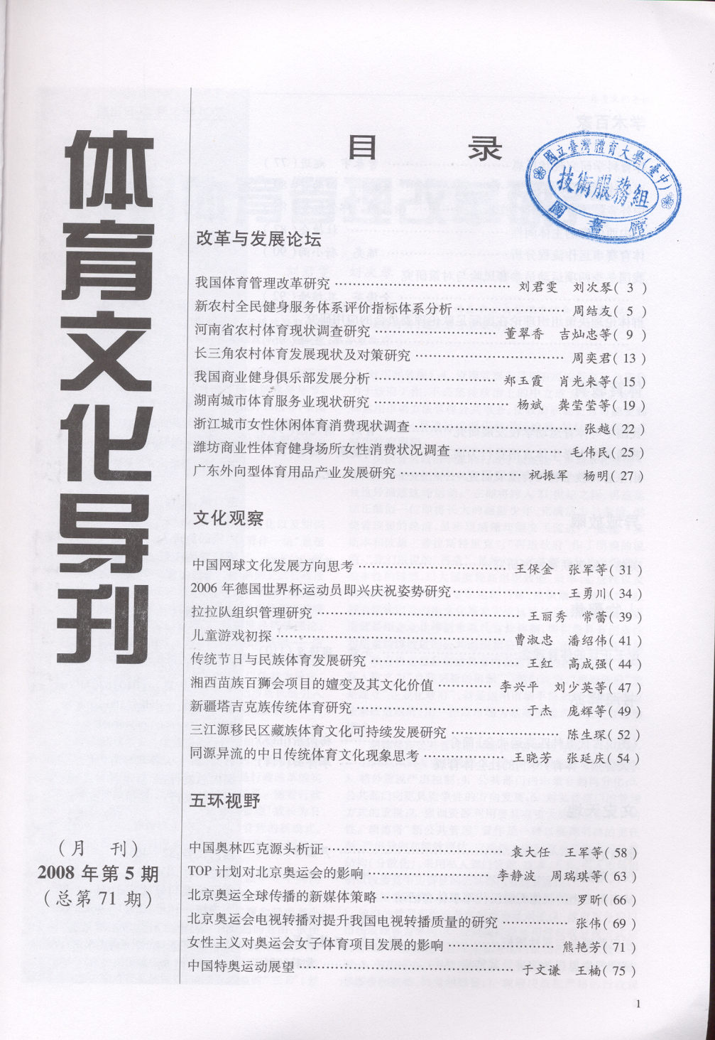 体育文化导刊 2008-05No.71(目次服務)