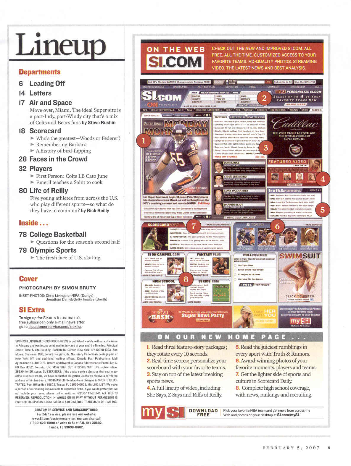 Sports Illustrated 2007-02v.106-5(目次服務)