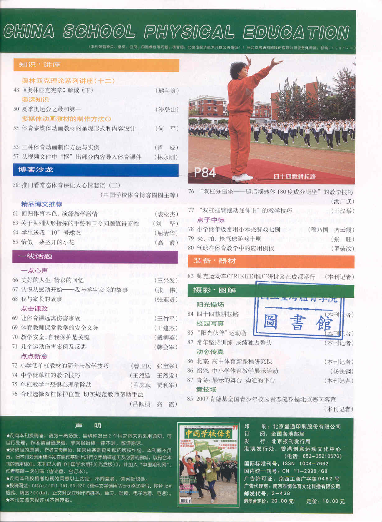 中国学校体育 2007-11No.169(目次服務)