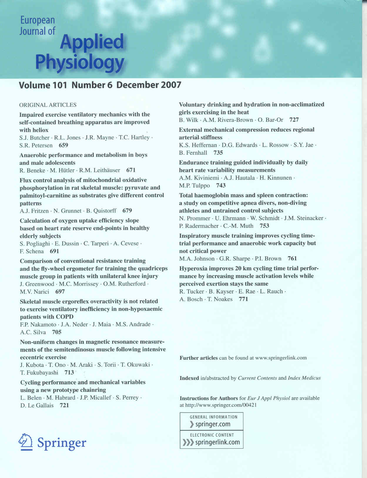 European Journal of Applied Physiology 2007-12v.101-6(目次服務)