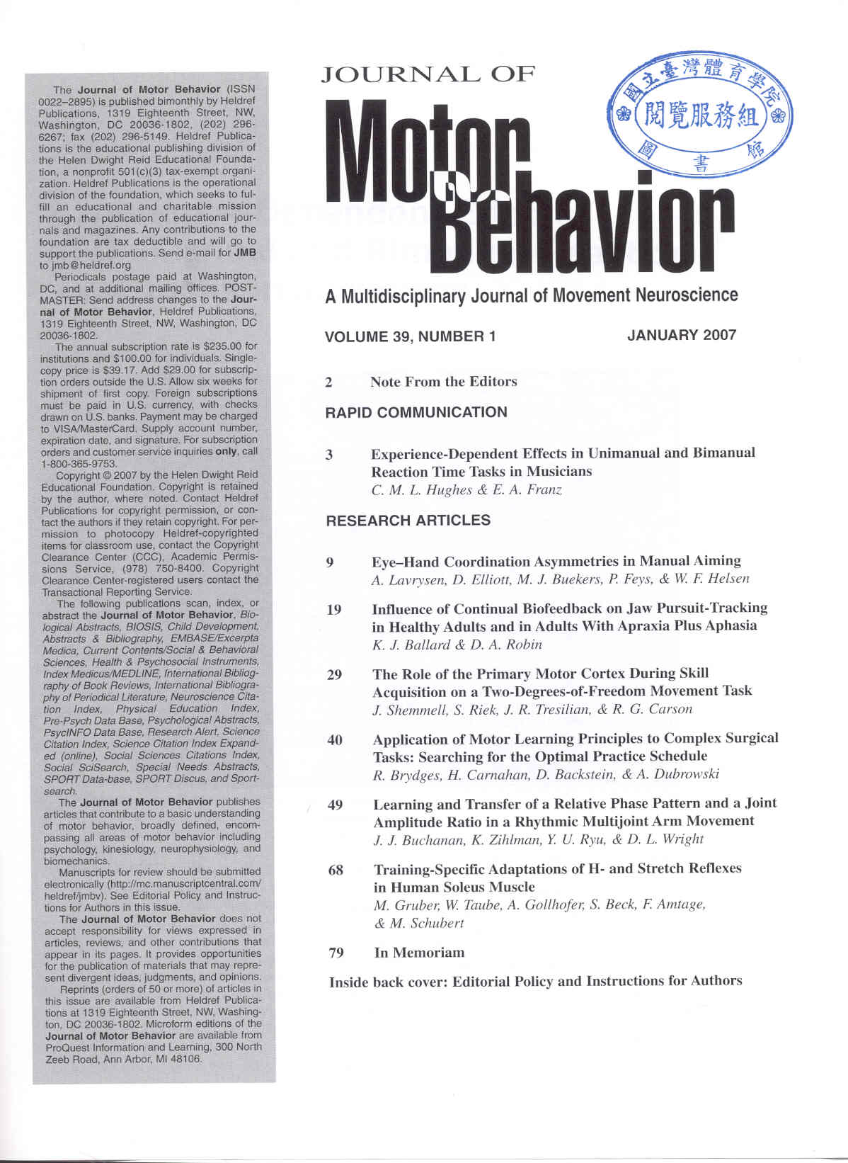 Journal of Motor Behavior 2007-01v.39-1(目次服務)