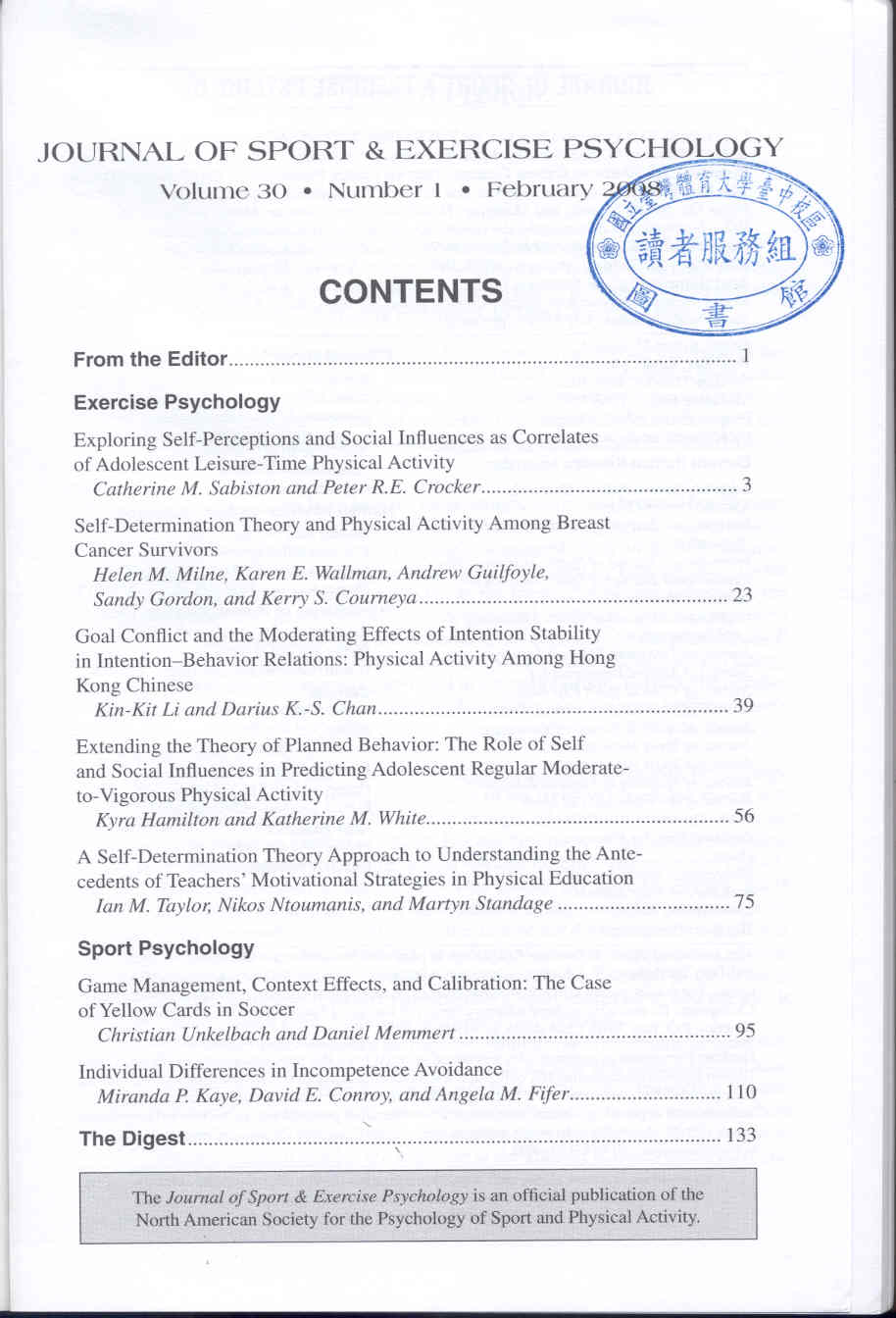 Journal of Sport and Exercise Psychology 2008-02v.30-1(目次服務)