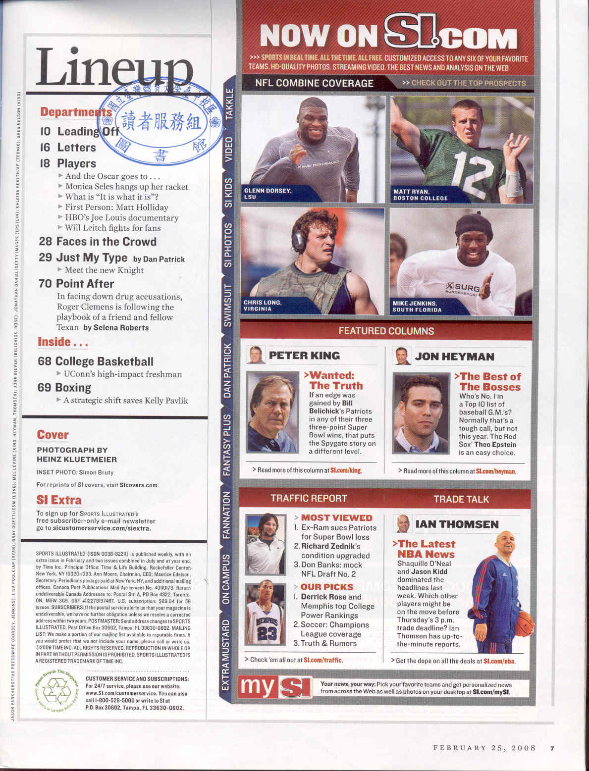 Sports Illustrated 2008-02v.108-8(目次服務)
