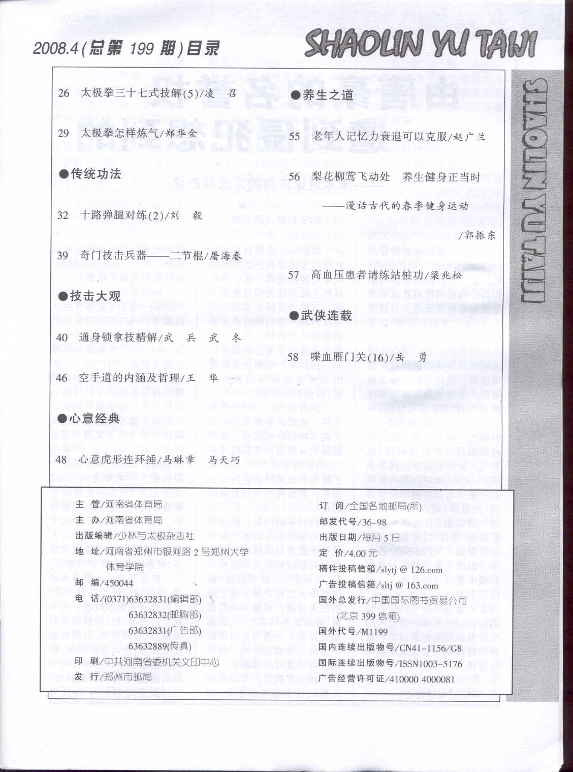 少林与太极 2008-04No.199(目次服務)